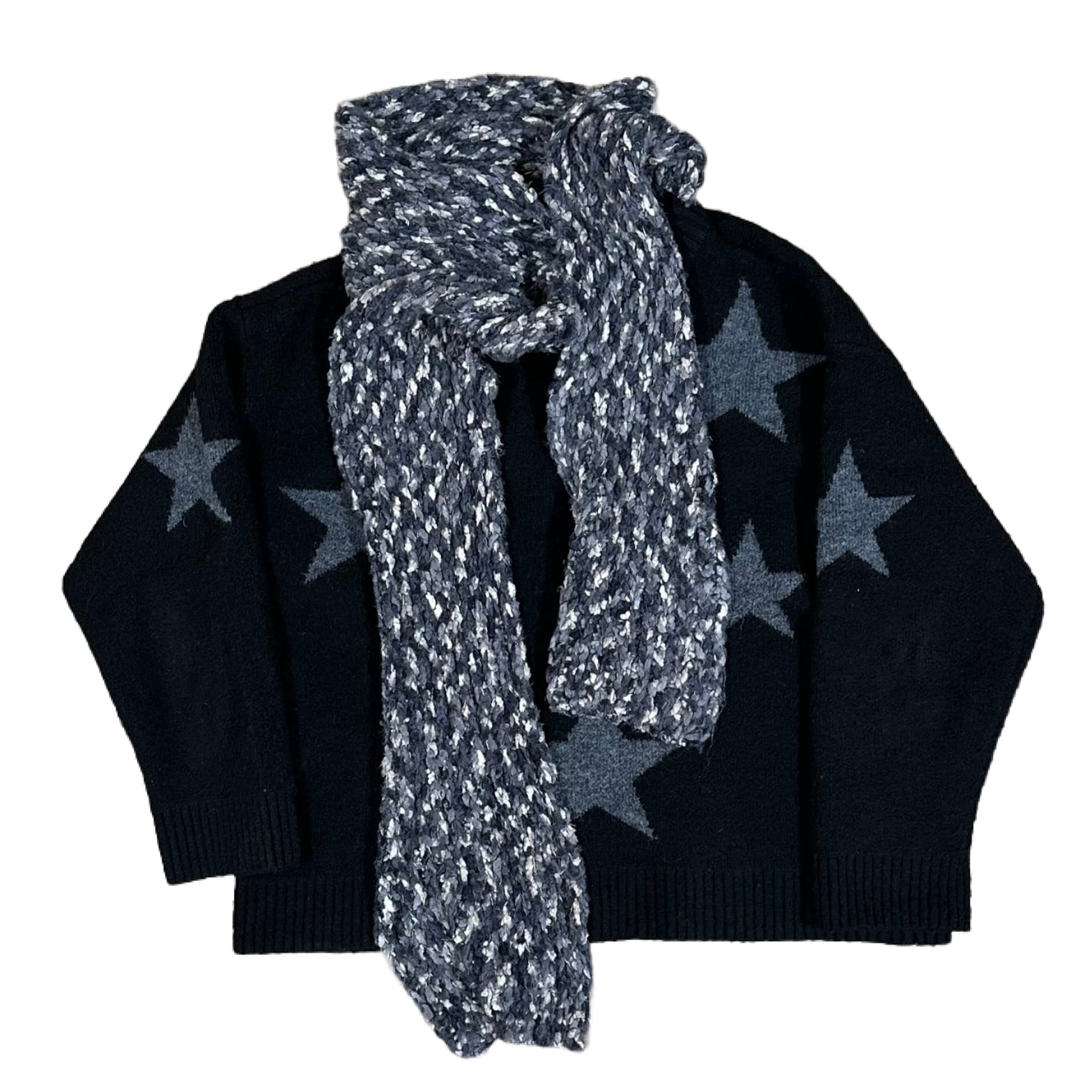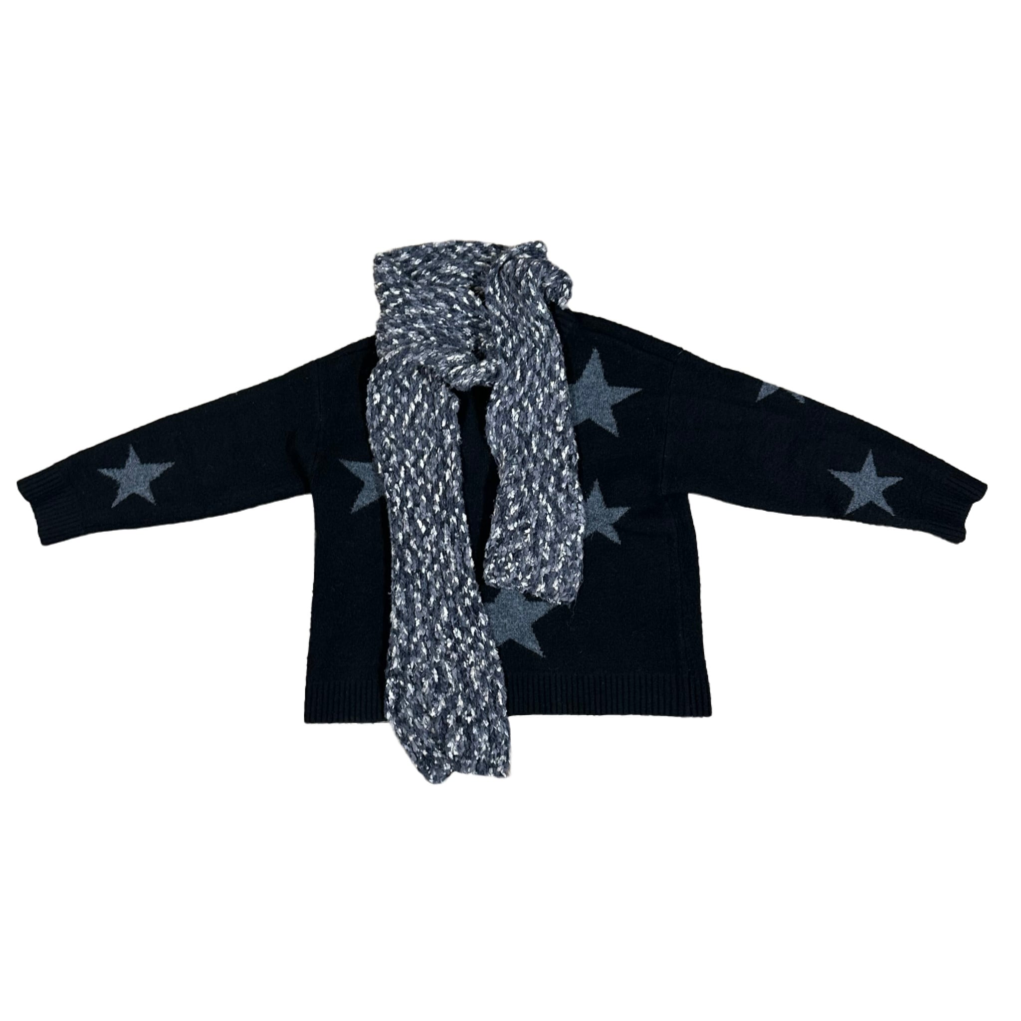 VIGOSS Star Pattern Scarf Attached Knit Sweater
